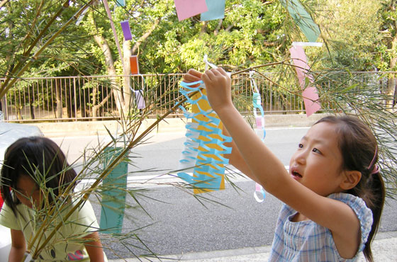 短冊にそれぞれの願いを込め七夕飾りと一緒に結びます。